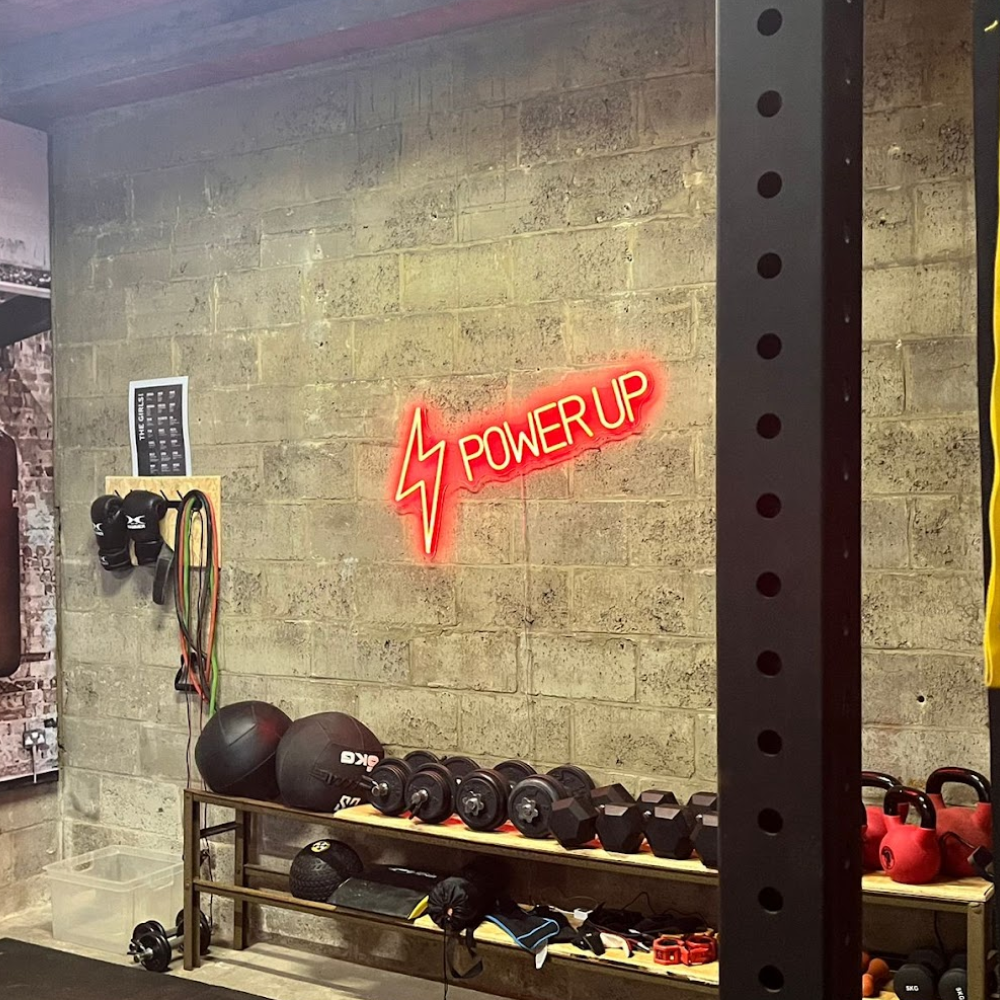 "Zo’n coole sfeer! De rode neon tegen onze bakstenen en metalen setup creëert de ultieme industriële gym vibe met een professioneel gevoel. Het voelt alsof ik sport in een high-end fitnessstudio."